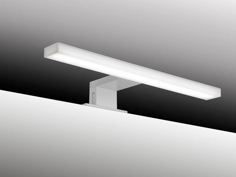 Lampada led SARA-30 clii-iP44-4.8w-230v-50hz 330 lumen 4000k classe energetica “a” alimentatore interno incluso – lunghezza cm 30 con doppio attacco per specchi FILO lucido o con bordo – alluminio bianco opaco