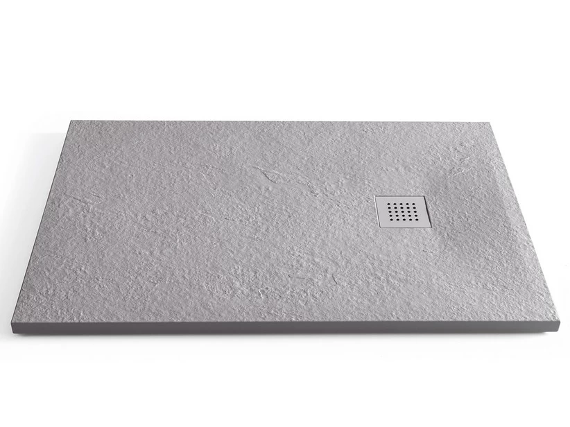 Piatto doccia in ceramica serie PIETRA cm. 100×70 H3 texture effetto pietra a spacco, finitura Grigio opaco.