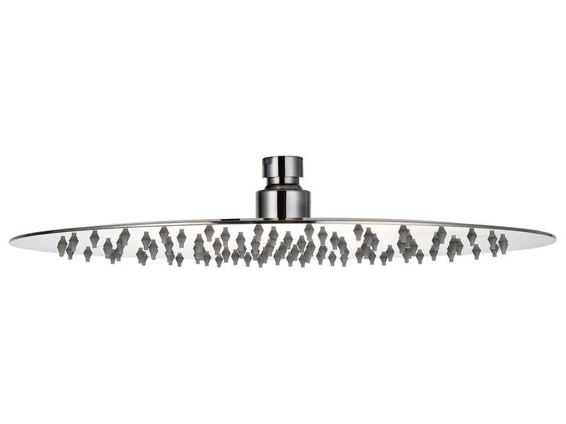 LOW soffione inox tondo ? 25 cm. SLIM sp. 2 mm finitura lucido a specchio con ugelli anticalcare in silicone grigio chiaro