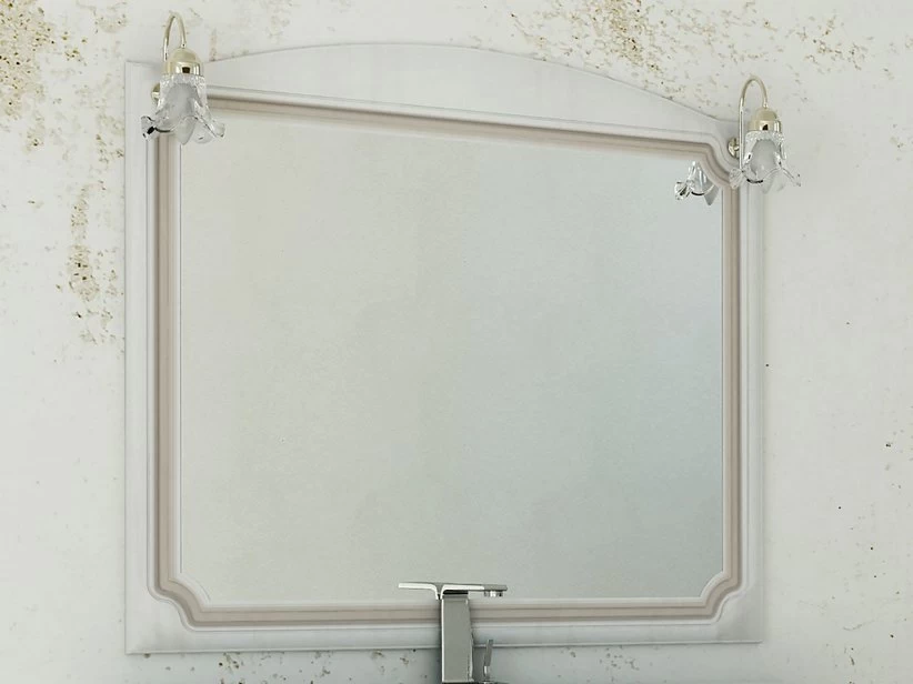 MATISSE specchio con cornice in legno cm. 110×100 bianco decape’ con due fori frontali laterali per lampade applique (non incluse).