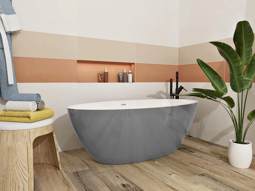NEMO6 bicolor vasca freestanding in pietraluce interno bianco lucido / esterno grigio lucido